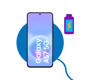 Beim Samsung Galaxy A57 ist kabelloses Laden nicht integriert. Das heißt: Du kannst das Gerät nicht einfach auf eine Ladefläche legen, um den Akku aufzuladen.