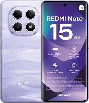 Das Redmi Note 15 hat ein großes 6,77-Zoll-AMOLED-Display (FHD+) mit hochfestem Glas, das besonders hell ist (bis zu 3.200 Nits) und mit einer flüssigen 120-Hz-Darstellung glänzt. Dazu kommt ein schlankes Design mit IP65-Zertifizierung, womit das Gerät sehr gut gegen Staub und Strahlwasser geschützt ist. Verfügbare Farben sind Schwarz, Glacier Blue und Lila.