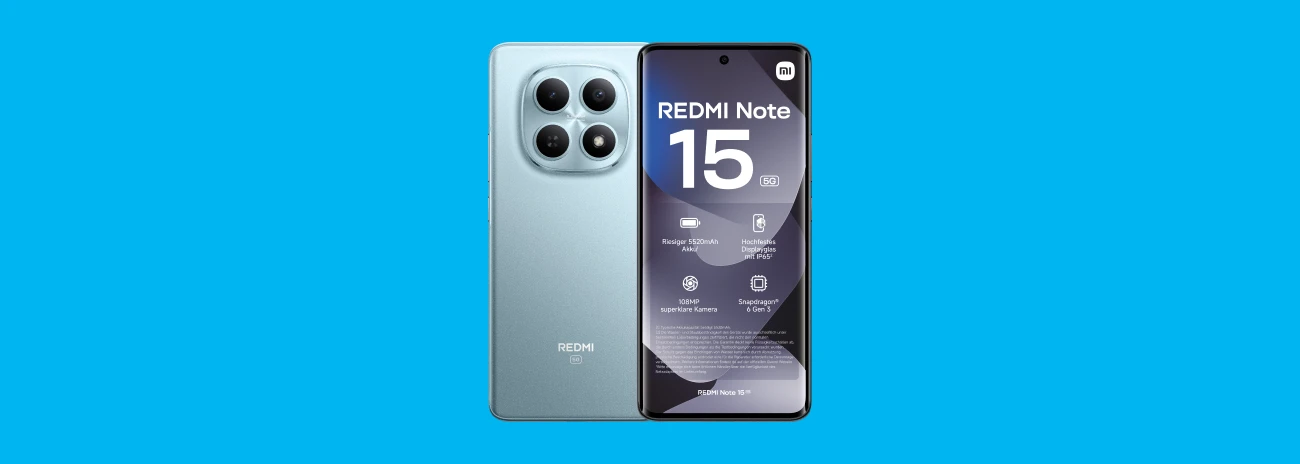 Das Redmi Note 15 überzeugt mit einem leichten Gehäuse, einem hochwertigen AMOLED-Display, einer guten 108-MP-Kamera sowie solider Performance für alle alltäglichen Aufgaben. In Kombination mit dem fairen Preis ist es die ideale Wahl für alle, die ein zuverlässiges, unkompliziertes Gerät möchten, das in jeder Situation gut funktioniert.